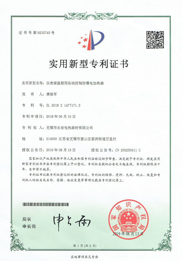专利实用-箱体防爆电加热器
